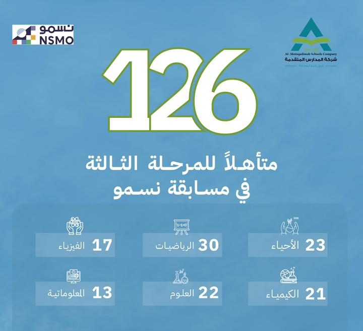 126 طالبًا وطالبة من طلاب شركة المدارس المتقدمة يتأهلون إلى المرحلة الثالثة في مسابقة نسمو 💙