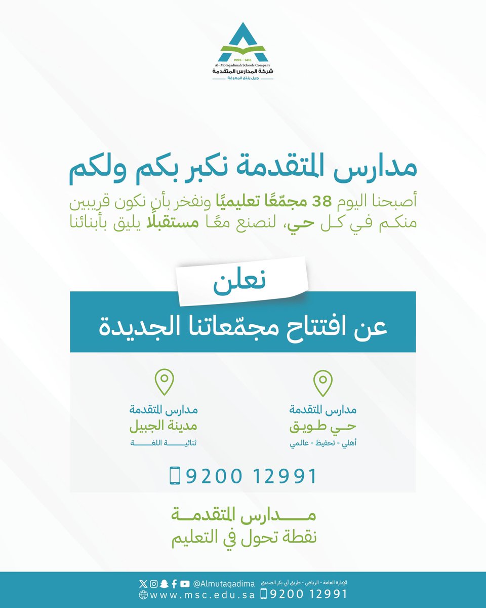 ✨ انضم لفريق شركة #المدارس_المتقدمة ✨