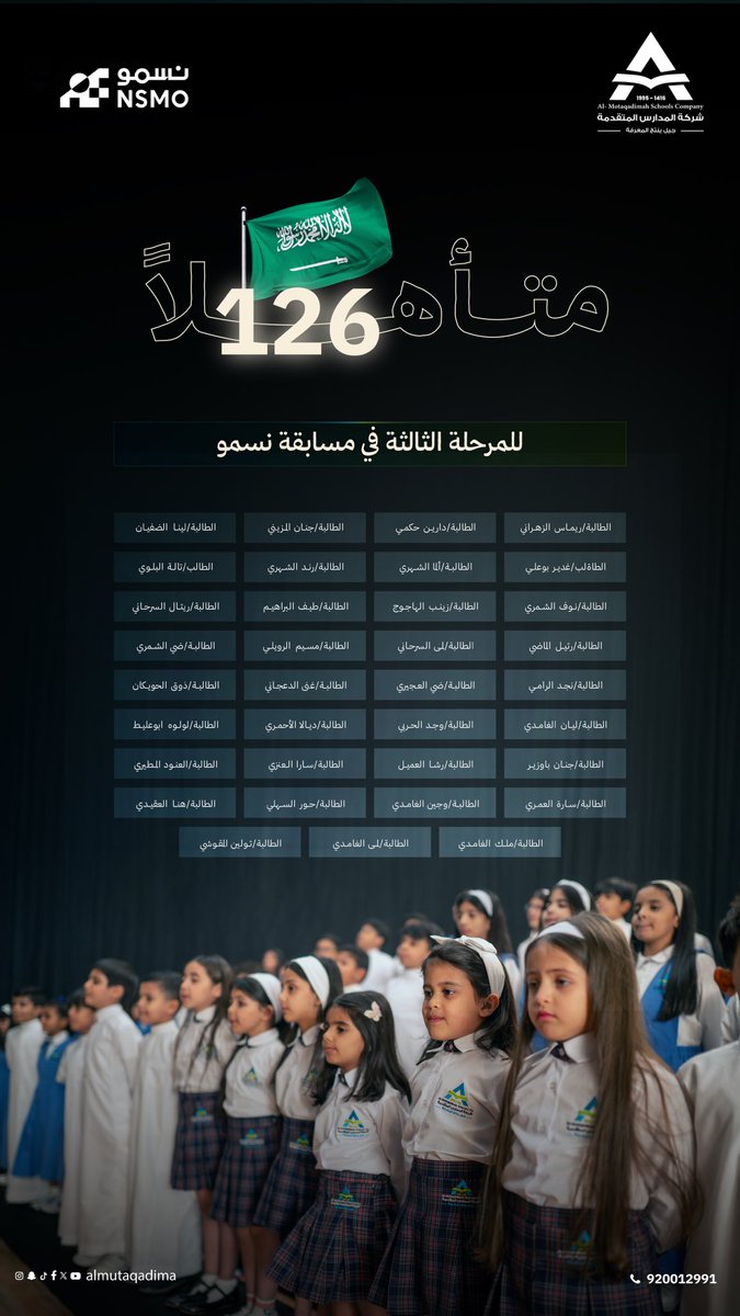 126 طالبًا وطالبة من طلاب شركة المدارس المتقدمة يتأهلون إلى المرحلة الثالثة في مسابقة نسمو 💙